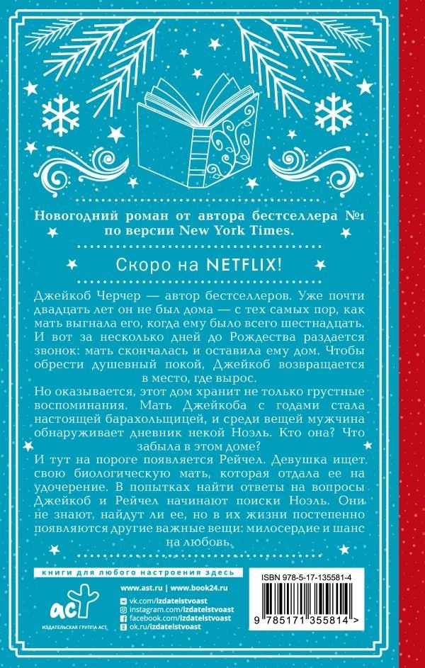 Ричард Пол Эванс – король рождественской прозы, автор бестселлеров New York Times, Washington Post и Usa Today. Его книги всегда наполнены теплотой, искренностью и любовью. «Дневник Ноэль» – рождественская история об искуплении и обретении счастья. Главный герой – потерянный и одинокий писатель, которого не смущает отсутствие семейного очага и традиций в рождественский сезон. Его жизнь довольна аскетична и проста, а о семейных ценностях он предпочитает писать, но не думать. Под рождество мать Джейкоба умирает и оставляет в наследство дом. Джейкоб возвращается туда, откуда его в 16 лет выгнала мать, но не испытывает ностальгии или скорби. Так продолжается до встречи с Рейчел – девушки, которую судьба и поиски матери завели на порог дома Джейкоба.