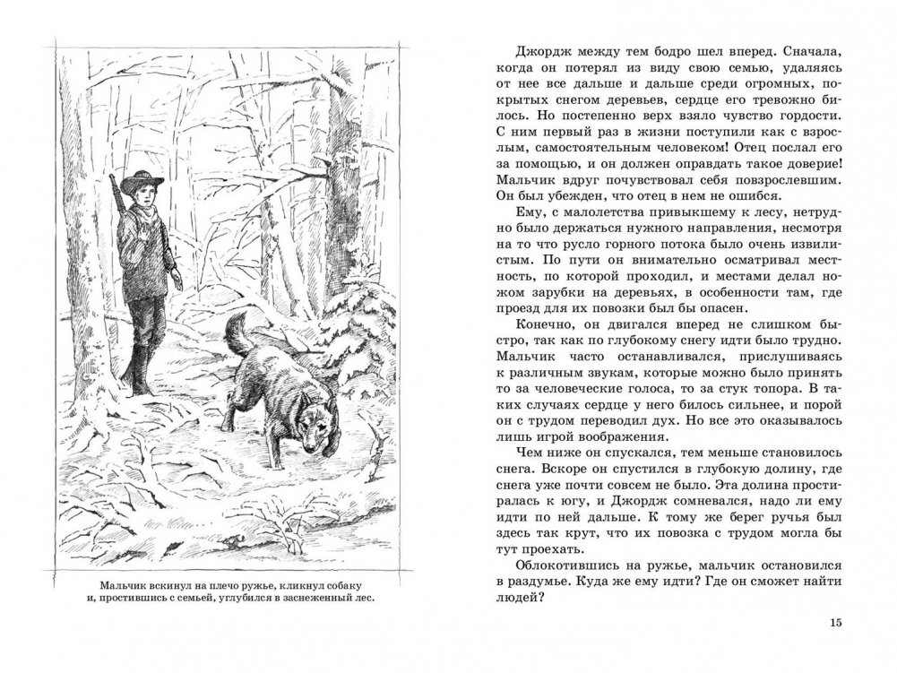 Калифорния, 1849 год, «золотая лихорадка» – на таком фоне развиваются события повести. Семья переселенцев терпит бедствие в горах, и четырнадцатилетний мальчик отправляется на поиски помощи, оставив отца, мать и маленькую сестренку в снегах Сьерра-Невада. Но снова встретиться со своими близкими ему предстоит еще очень нескоро. Отважный мальчик переживает множество опасных, захватывающих, а порой и забавных приключений. И на всем пути его сопровождает случайно встреченный в лесу загадочный старый охотник…