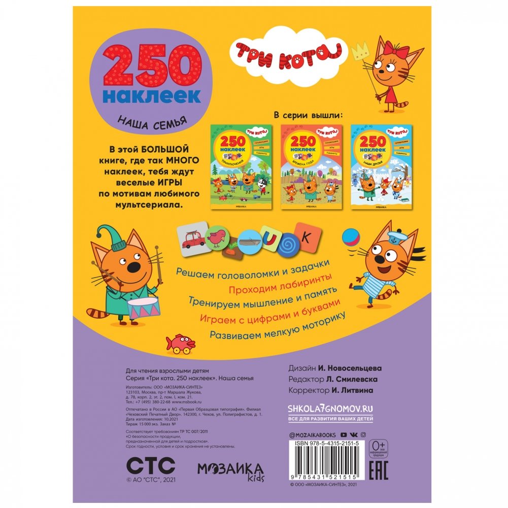 Большой формат, много заданий и наклеек и любимые герои мультсериала «Три кота» — вот идеальное сочетание, которое надолго увлечет любого ребенка. На каждой странице книги «Времена года» серии «Три кота. 250 наклеек» ребенок найдет интересные задания на тему сезонных изменений; все их нужно будет решить с помощью наклеек. Пусть это не так просто, но очень увлекательно! А приклеив все 250 наклеек, можно проверить себя, в конце спрятаны ответы на все головоломки. Логика, внимание, память — всестороннее развитие мышления вместе с Коржиком, Карамелькой и Компотом. Миу-миу-миу!