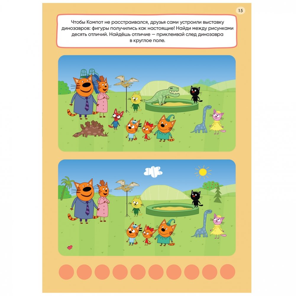 Большой формат, много заданий и наклеек и любимые герои мультсериала «Три кота» — вот идеальное сочетание, которое надолго увлечет любого ребенка. На каждой странице книги «Времена года» серии «Три кота. 250 наклеек» ребенок найдет интересные задания на тему сезонных изменений; все их нужно будет решить с помощью наклеек. Пусть это не так просто, но очень увлекательно! А приклеив все 250 наклеек, можно проверить себя, в конце спрятаны ответы на все головоломки. Логика, внимание, память — всестороннее развитие мышления вместе с Коржиком, Карамелькой и Компотом. Миу-миу-миу!