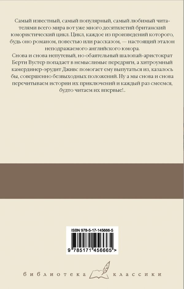 Самый известный, самый популярный, самый любимый читателями всего мира вот уже много десятилетий британский юмористический цикл. Цикл, каждое из произведений которого, будь оно романом, повестью или рассказом, — настоящий эталон неподражаемого английского юмора.