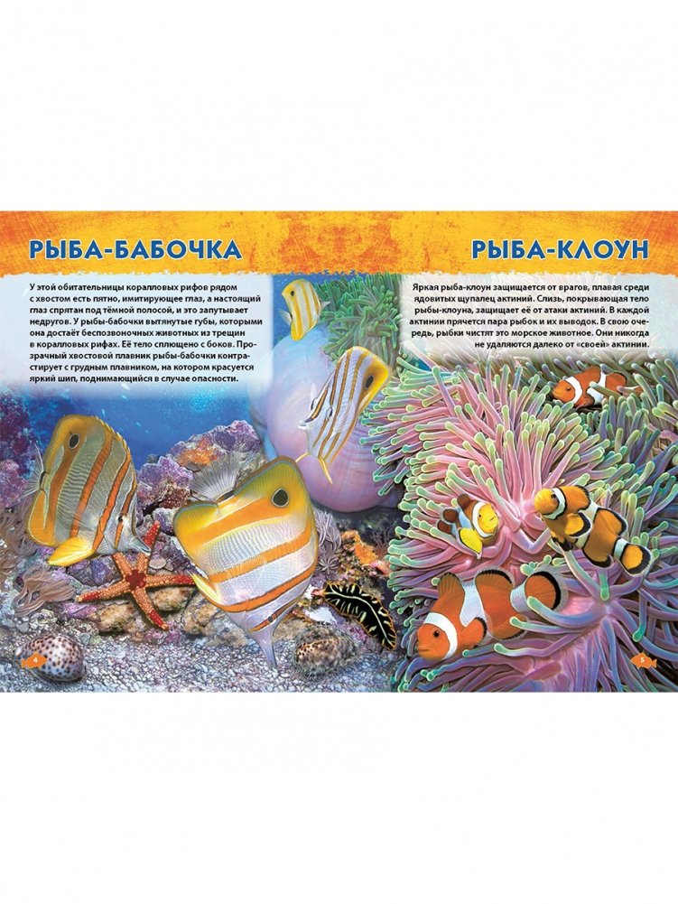 Загадочный подводный мир с яркими кораллами и водорослями, красочными рыбками, опасными акулами и скатами привлекает и интересует многих детей. Рассматривая красочные иллюстрации на страницах нашей энциклопедии, ваш ребёнок познакомится с самыми разными морскими обитателями, как хищными, так и миролюбивыми. Он узнает, какие яркие рыбки живут в коралловых рифах, почему не надо бояться китовой акулы, чем дюгонь отличается от ламантина, как передвигается морской конёк, кто обитает на самой глубине морей и океанов, на кого любит охотиться кашалот. Краткие и понятные тексты не дадут скучать вашему малышу, а яркие картинки перенесут его в удивительный подводный мир. Эта книга из серии «Первая энциклопедия дошкольника» станет прекрасным подарком любому ребёнку!