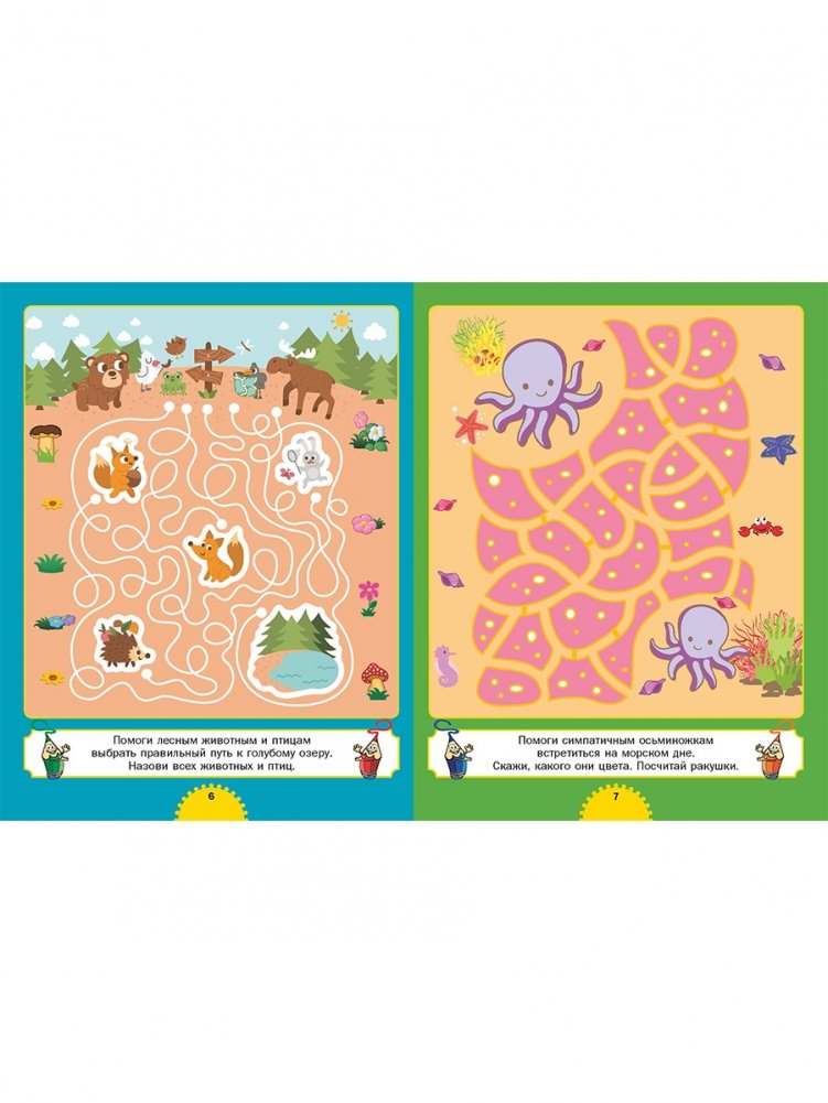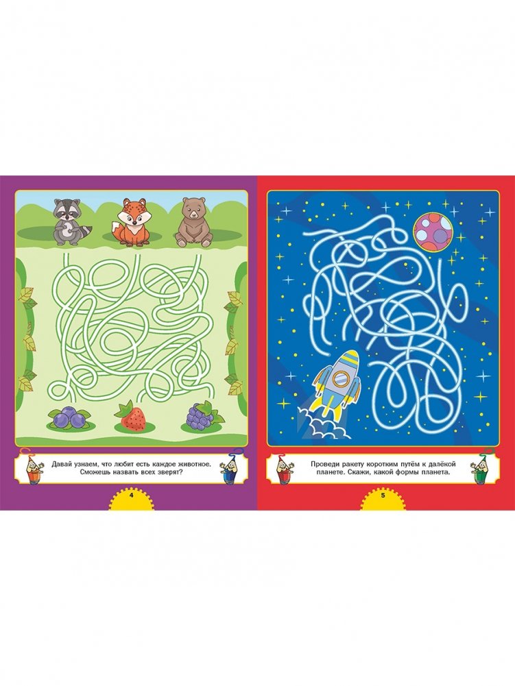 Перед вами книжка с яркими картинками, которые привлекут вашего ребёнка, и он, вероятно, впервые самостоятельно попутешествует по занимательным лабиринтам, развивая своё внимание и мелкую моторику. А отвечая на несложные вопросы, научится простому счёту, сможет различать цвета и формы предметов, расширит свой кругозор. Вместе со своим ребёнком вы весело и с пользой проведёте время!