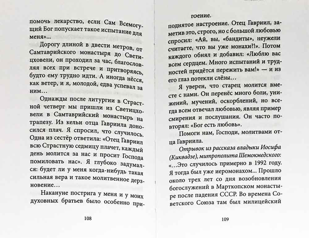 та книга посвящена преподобному исповеднику архимандриту Гавриилу (Ургебадзе), прославленному в лике святых в 2012 году. Отец Гавриил нес редкий в наши дни подвиг юродства. Удивительная жизнь, «странные поступки», слова, и главное, особенная любовь Христова ко всем — отличали старца. В книге собраны советы отца Гавриила, наставления, фрагменты жития, воспоминания о нем и свидетельства о его помощи.