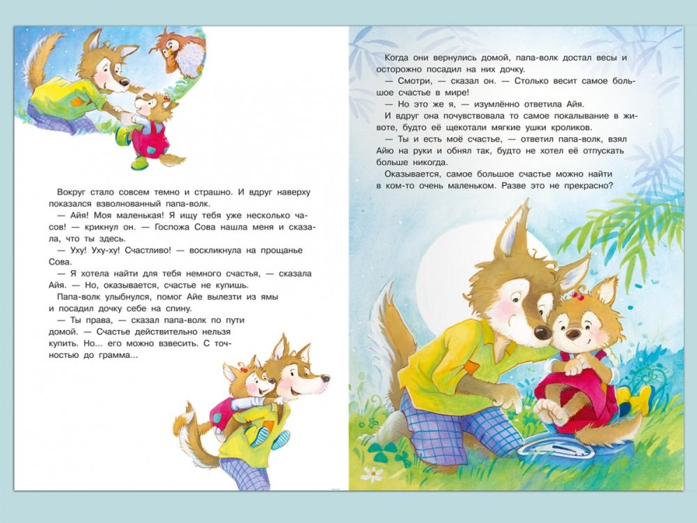 Ваш малыш совершит путешествие по сказочному лесу вместе с маленькой волчицей Айей и узнает о том, что делает каждого из нас счастливым и как важно любить и беречь наших близких. Большие и красочные иллюстрации Андреа Хеброк сделают чтение наглядным и захватывающим.
