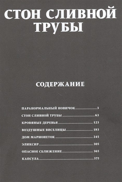 Из беспросветной тьмы, царящей в недрах домашней канализации, доносится леденящий душу стон... Мать, страдающая от болезненной одержимости чистотой, и две ее красавицы-дочери становятся жертвами навязчивого преследования со стороны отвратительного на вид молодого человека. Кроме заглавной истории, в сборник входят еще семь рассказов о загадочных и леденящих душу явлениях.