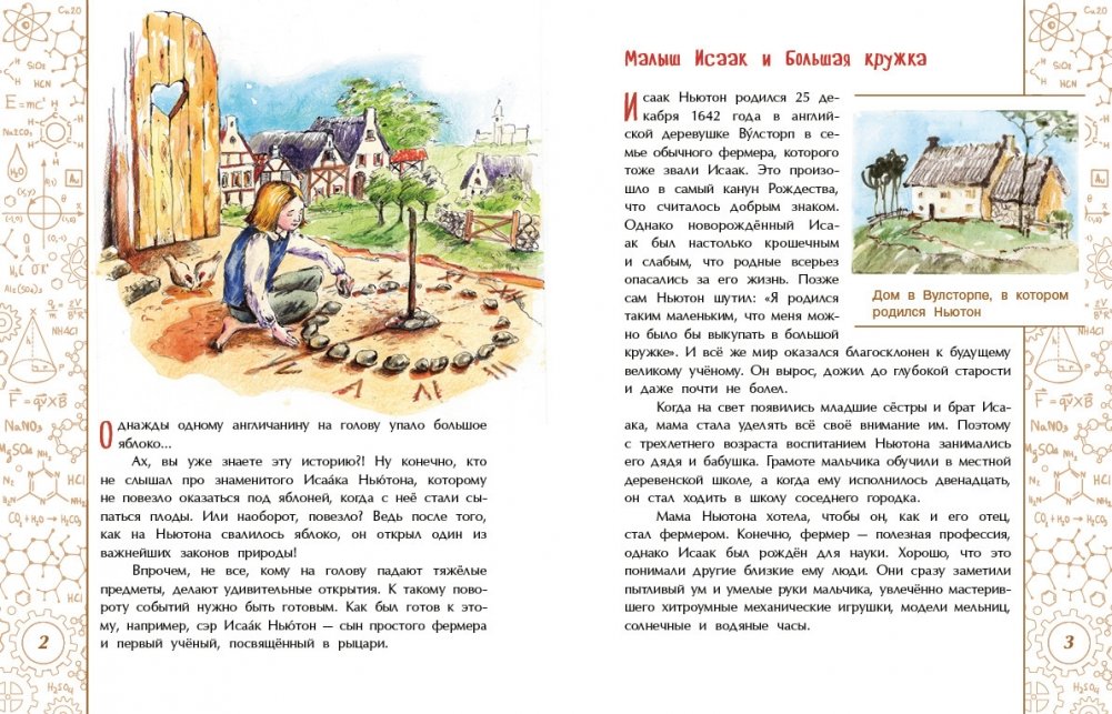 Белый цвет состоит на самом деле из семи цветов. Все тела во Вселенной взаимно притягивают друг друга. Эти удивительные открытия сделал сын простого английского фермера Исаак Ньютон. Он также сформулировал три главных закона механики, стал первым учёным, посвящённым в рыцари, и членом парламента.