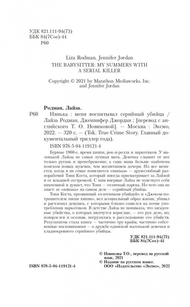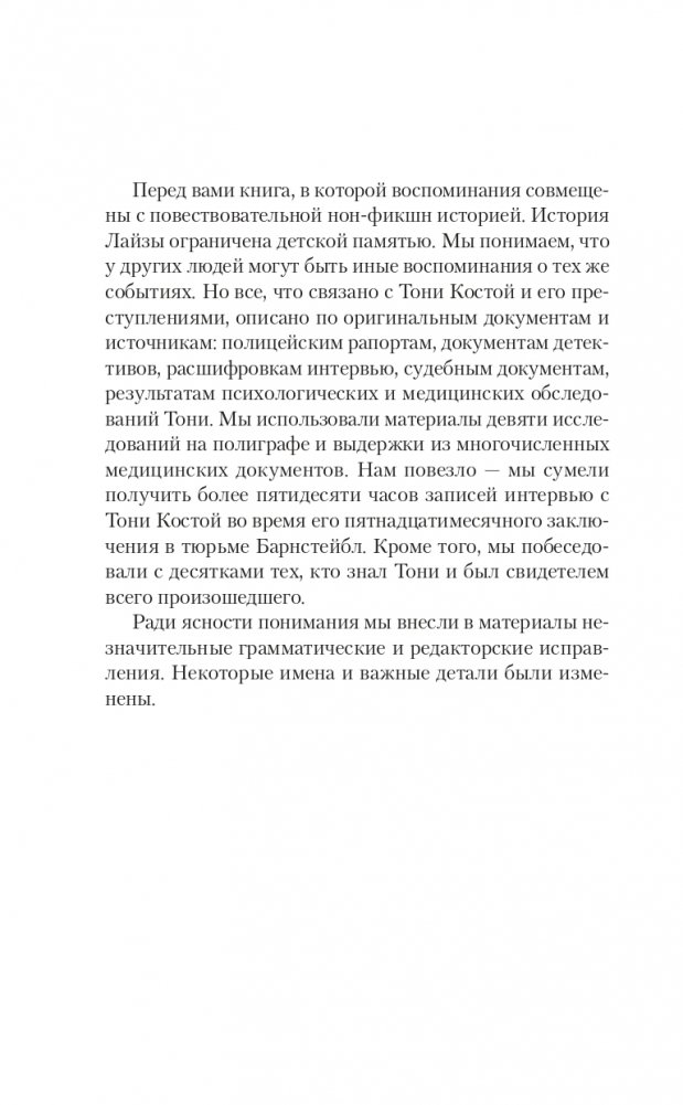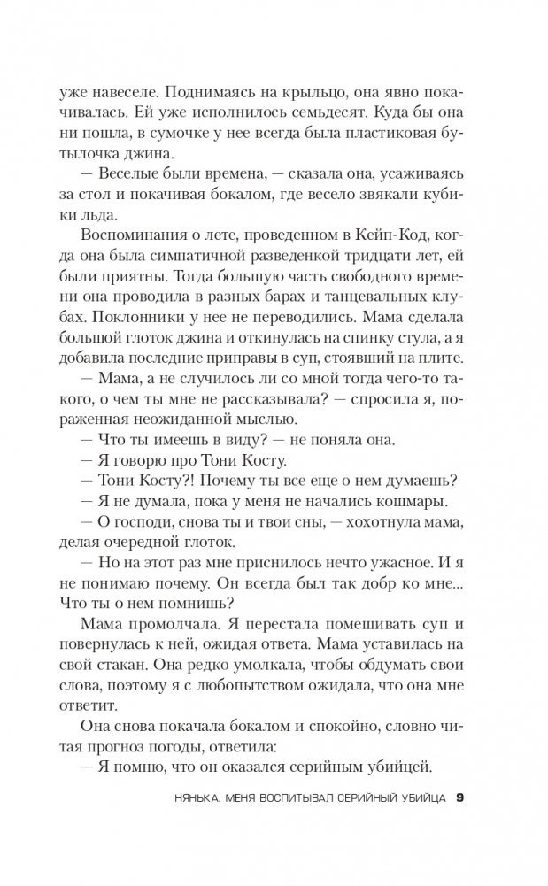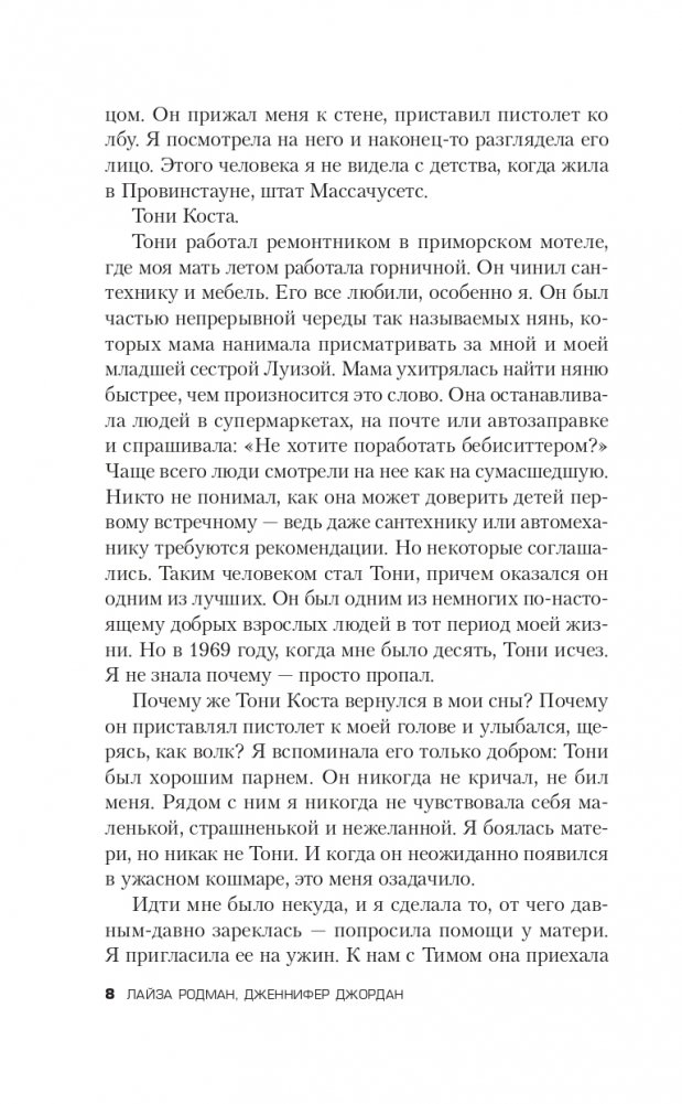 Бурные 1960-е, время хиппи, рок-н-ролла и наркотиков. У маленькой Лайзы не самая лучшая мать. Девочка слышит от нее только ругань и пренебрежение, а сама мама больше озабочена поиском новых мужчин, чем воспитанием дочери. Но все меняется, когда в их семье появляется "нянька" — дружелюбный разнорабочий Тони Коста, который иногда присматривает за Лайзой и ее младшей сестренкой. С ним впервые Лайза не чувствует себя никчемной и думает, что Тони — отличный парень. Но чего она не знает: ее "нянька" на самом деле — серийный убийца. Тони Коста, прозванный "плотником-убийцей" и "Джеком-Потрошителем эпохи хиппи", вел асоциальный образ жизни, убивал и расчленял девушек, с которыми близко сошелся на почве употребления наркотиков. В детстве Лайза не понимала, что загадочные убийства, о которых шепчутся взрослые — его рук дело, но повзрослев и осознав, погрузилась в расследование его убийств. Результатом стала книга — частично тру-крайм, частично собственные воспоминания, — о дружбе одинокой маленькой девочки и хладнокровного серийного убийцы.