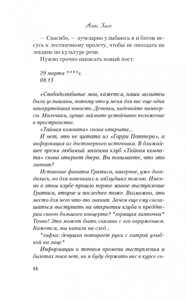 Имя таинственного музыканта всколыхнуло социальные сети. Никто не знает, кто он на самом деле, но его голос и тексты песен успели покорить тысячи сердец. Личность Гратиса остается загадкой для фанатов, пока за дело не берется Лиля Сырникова. Любопытная девчонка намерена рассекретить певца любой ценой. Для этого у Лили есть все необходимое: решимость, воля к победе, личный блог с армией единомышленников и милый напарник, чья "помощь" только отвлекает ее от расследования. Но это, возможно, даже к лучшему, ведь чужие тайны могут оказаться минным полем, а ты – не самым профессиональным сапером.