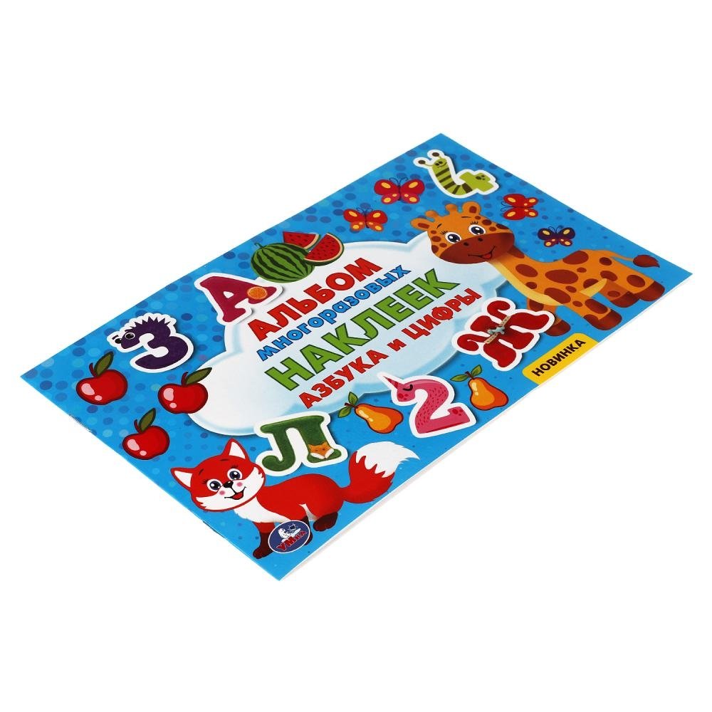 Альбом многоразовых наклеек «Азбука и цифры» ТМ «УМка» станет прекрасным развивающим подарком для маленького любознайки: