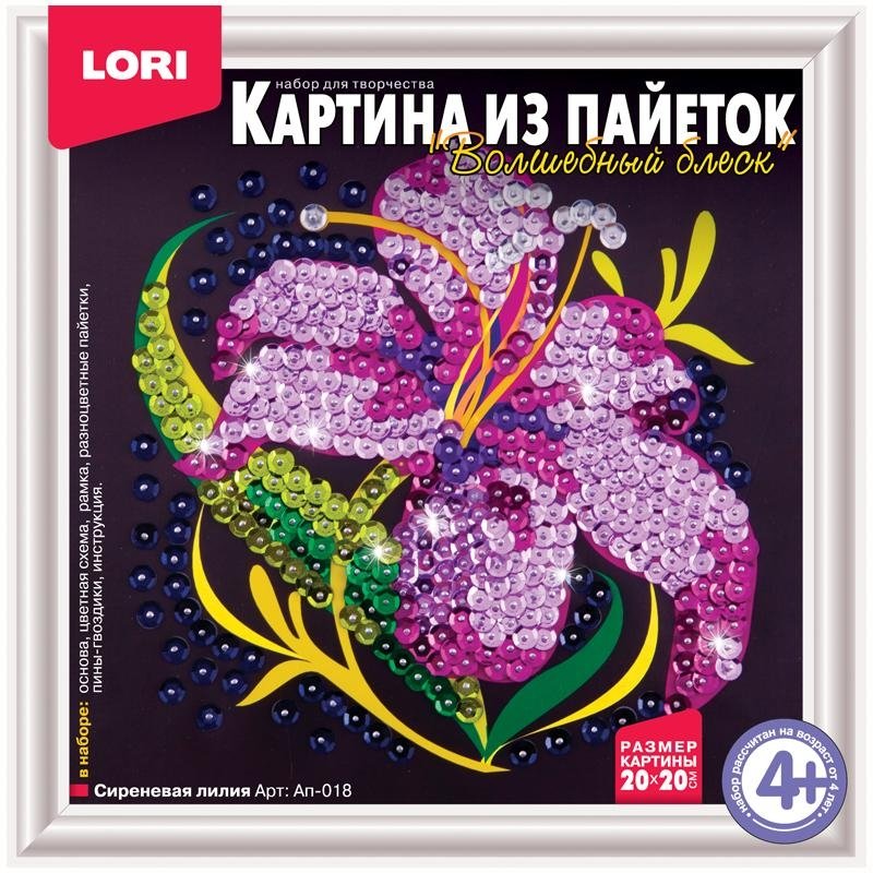 Аппликация-картина из пайеток Lori "Сиреневая лилия", 20*20см, от 4-х лет