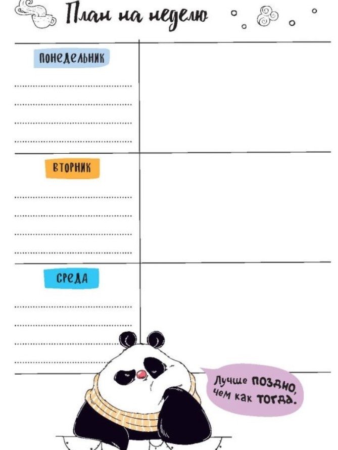 Вы сможете одновременно уделять время рабочим вопросам, вести личный дневник, развивать креативное мышление и… брать пример с милого и ироничного Пандыча, который никогда не унывает!