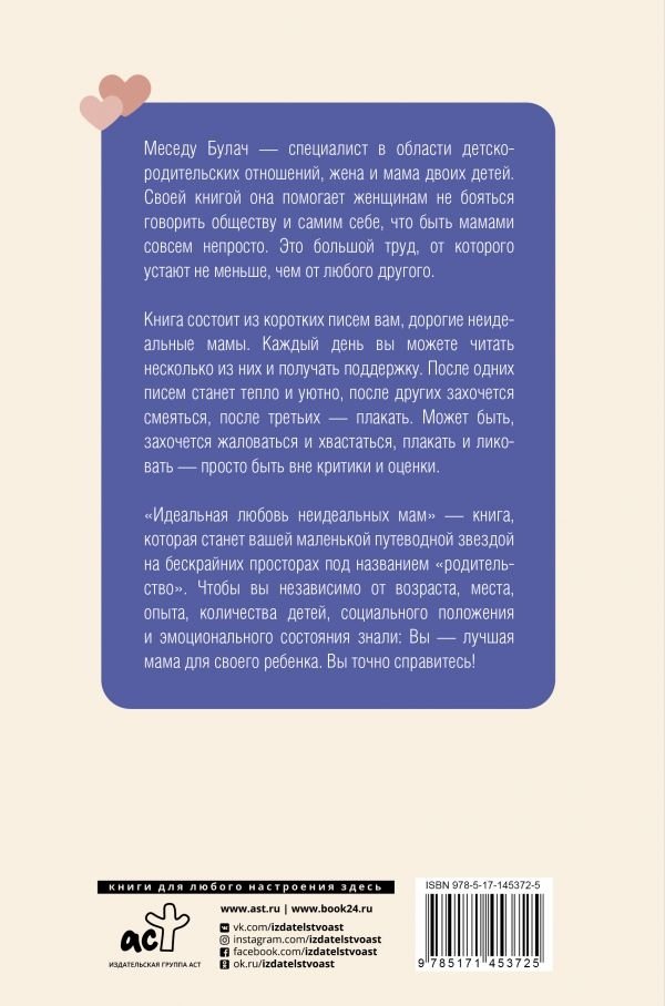 Меседу Булач — специалист в области детско-родительских отношений, жена и мама двоих детей. Своей книгой она помогает женщинам не бояться говорить обществу и самим себе, что быть мамами совсем непросто. Это большой труд, от которого устают не меньше, чем от любого другого.
