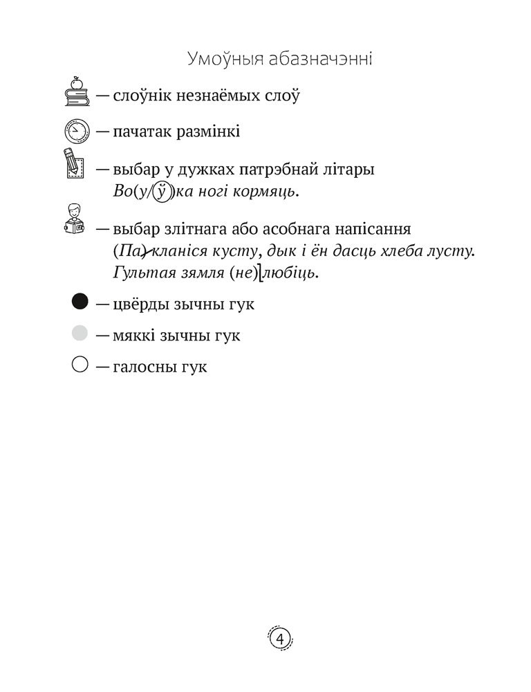 Матэрыял можа выкарыстоўвацца ў школе на этапах актуалізацыі, замацавання і паўтарэння вучэбнага матэрыялу, а таксама дома для ўзнаўлення ведаў. Сшытак дапаможа сфарміраваць арфаграфічную пільнасць, засвоіць правілы з розных раздзелаў мовазнаўства, якія вывучаюцца ў пачатковай школе.
