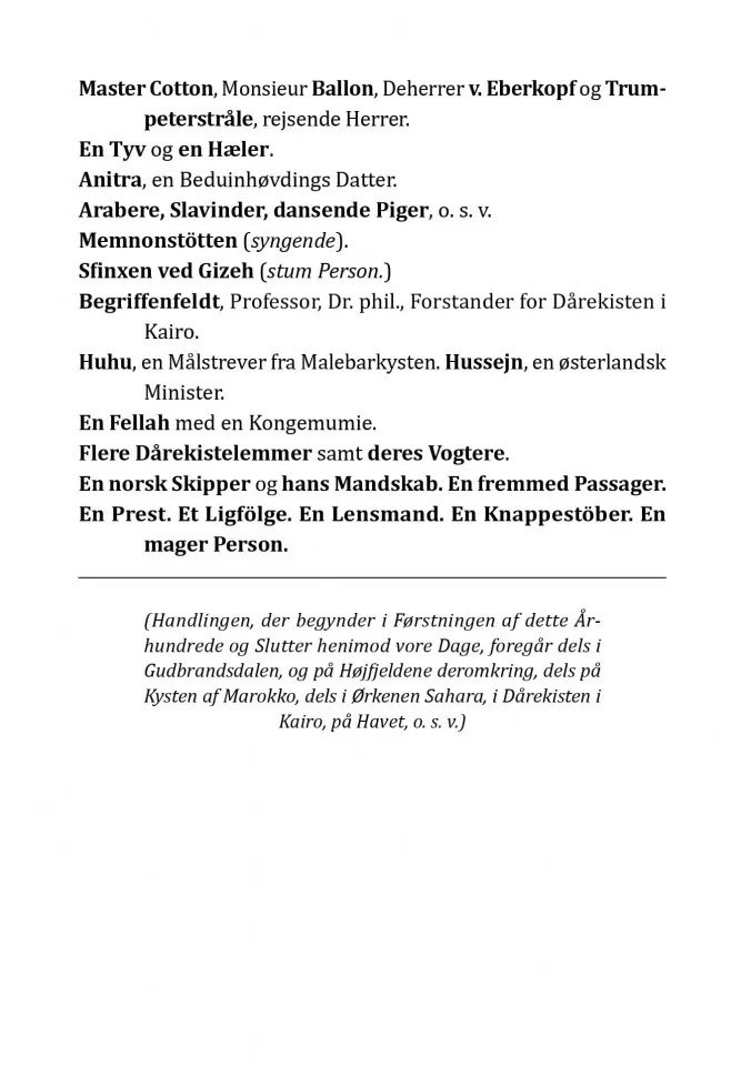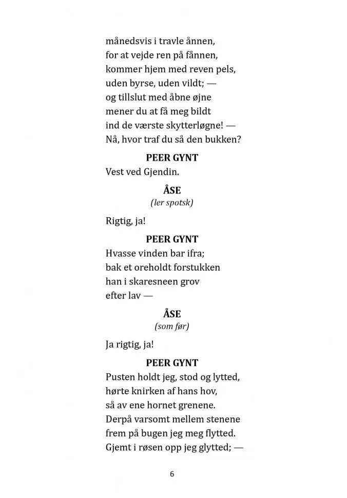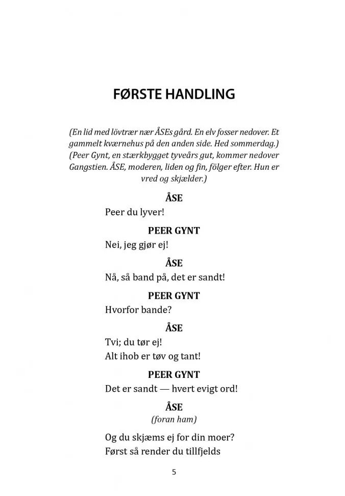 Пьесы Ибсена, написанные в разное время, показывают эволюцию норвежского языка. После того как Норвегия получила независимость от Дании в начале XIX века, литературный норвежский язык складывался еще долгое время. Годы творческой активности Ибсена совпали с периодом становления национальной идентичности, поэтому «Пер Гюнт», «Кукольный дом» и «Дикая утка» написаны на датском варианте норвежского языка.