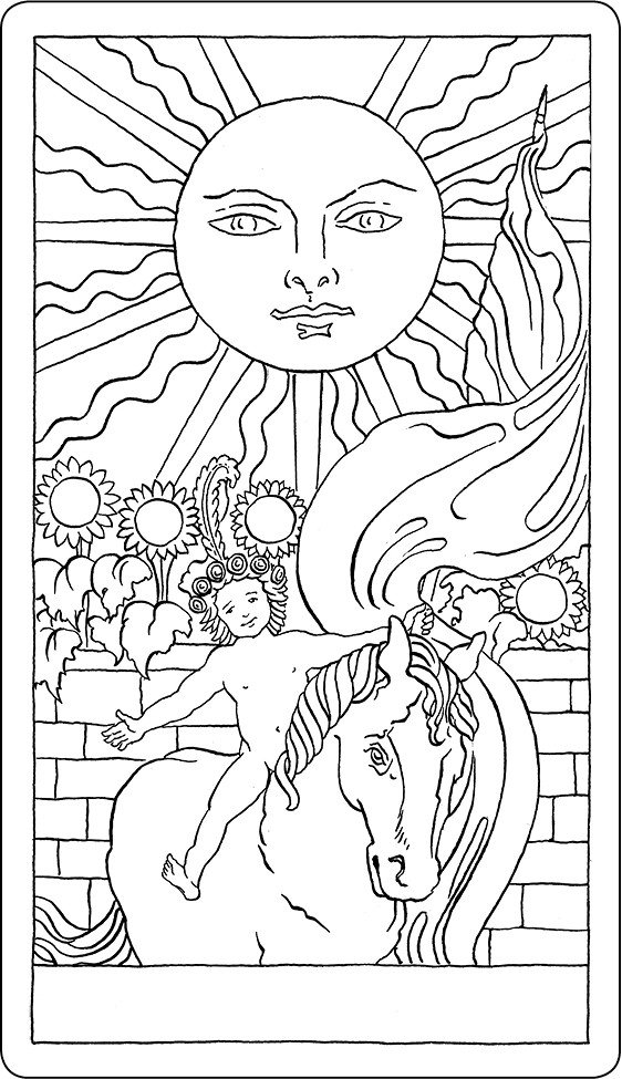 Классическая колода карт Таро А.Э. Уэйта и П.К. Смит представлена в виде, удобном для самостоятельного раскрашивания. Эта своего рода медитативная работа с изображениями позволит создать колоду карт с комфортной для пользователя цветовой гаммой. Кроме того можно быть уверенным, что ни один - даже самый маленький - элемент рисунка не ускользнет от внимания и в результате сформируется наиболее полное представление о символическом наполнении этой колоды карт.