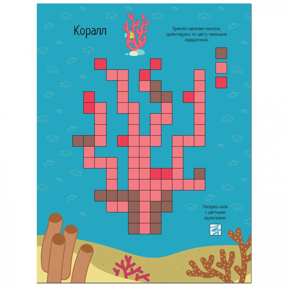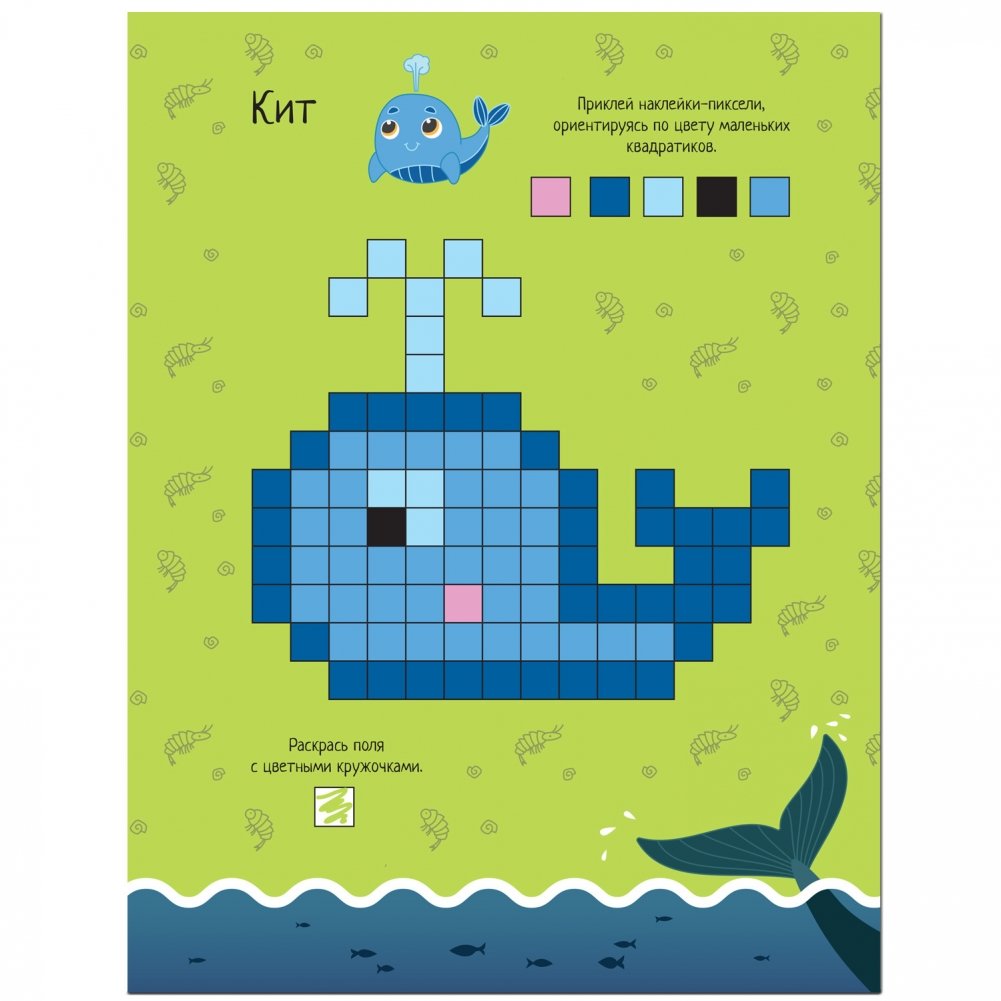 В книге «В море» серии «Пиксели. Клеим и рисуем» ребенку предстоит составлять картинки по образцу из наклеек-пикселей. В книге их 780 штук! Как по волшебству, на пустой страничке появятся изображения морских обитателей. А еще нужно будет вооружиться цветными карандашами и выполнить разнообразные задания с пикселями: дорисовать картинку зеркально, по образцу или по легенде, а также продолжить ряды.