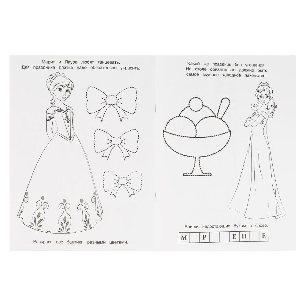 На страницах этой занимательной раскраски маленькую художницу ожидает захватывающее путешествие в сказочное снежное королевства и знакомство с его жителями. Раскрашивая интересные картинки с чётким контуром, девочка научится не выходить за границу рисунка. Благодаря удобному формату книжку можно взять с собой в дорогу.