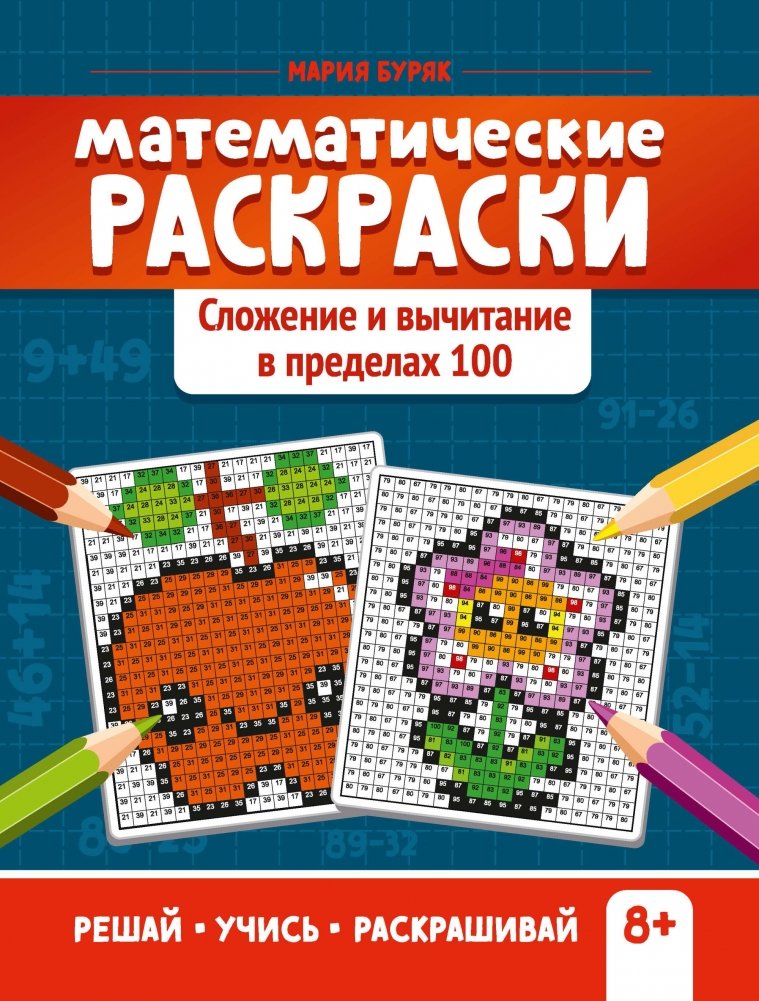 На страницах этой книги собраны задания на закрепление случаев сложения и вычитания в пределах 100. Дети решают примеры, записывают ответы. Затем находят на числовом поле полученные результаты и закрашивают клетки с числами указанными цветами. Выполнение таких заданий развивает память, внимание, мелкую моторику рук.