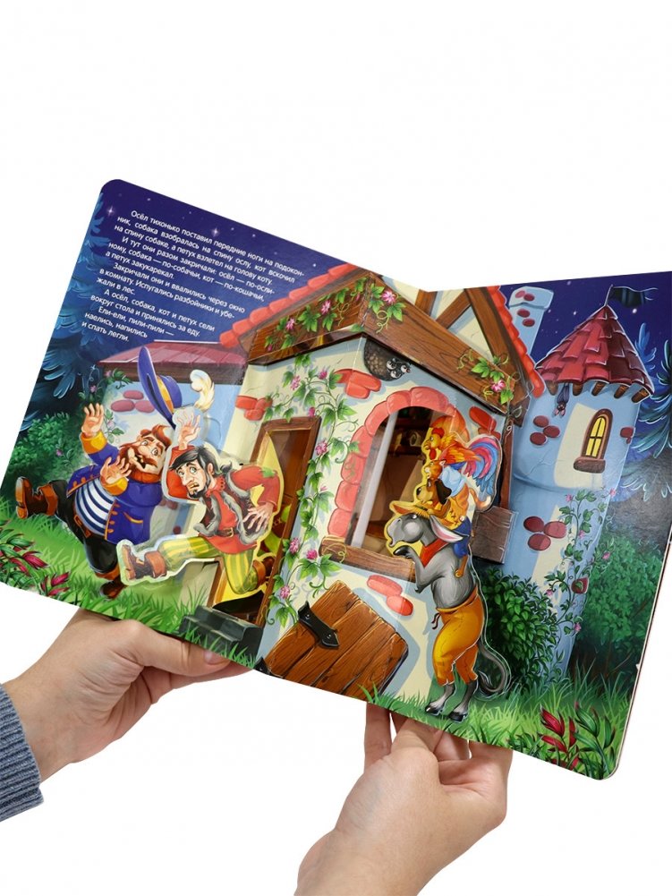 Серия «Библиотека сказок» — это любимые сказки от торговой марки Malamalama. «Бременские музыканты» — это знаменитая история братьев Гримм об осле, собаке, коте и петухе. На ярких страницах книги перед вашим малышом оживёт история об отважных волшебных животных, которые знают, что такое дружба и взаимовыручка, и ни за что не остановятся перед трудностями! Объёмные pop-up элементы помогут окунуться в неповторимую атмосферу. А красочные иллюстрации поднимут настроение и взрослым, и детям!