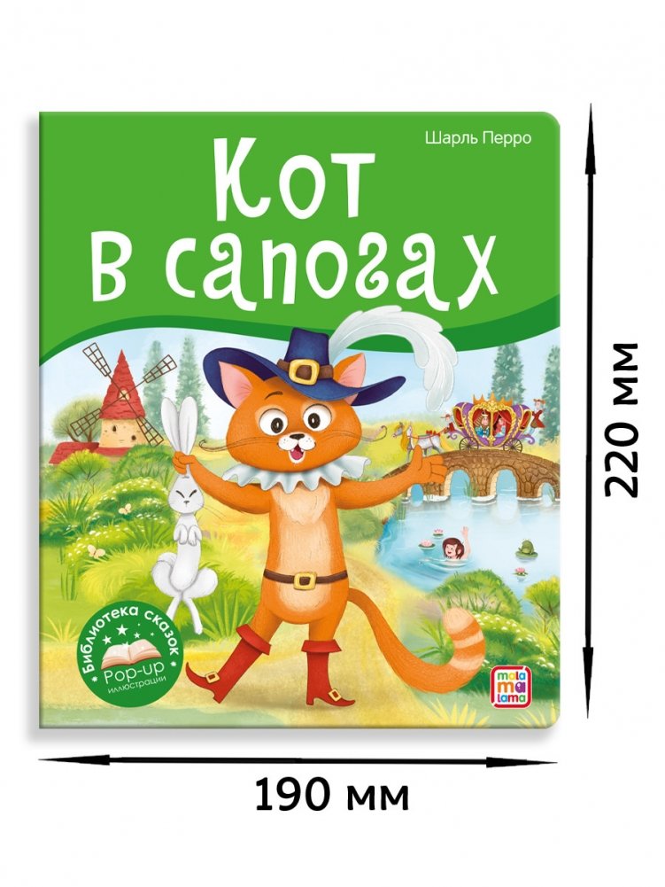 Серия «Библиотека сказок» — это любимые сказки от торговой марки Malamalama. «Кот в сапогах» — знаменитая история, рассказанная Шарлем Перро. На ярких страницах книги перед вашим малышом оживёт история о хитром Коте, который превратил своего хозяина из сына мельника в маркиза. Объёмные pop-up элементы помогут окунуться в неповторимую атмосферу. А красочные иллюстрации поднимут настроение и взрослым, и детям!