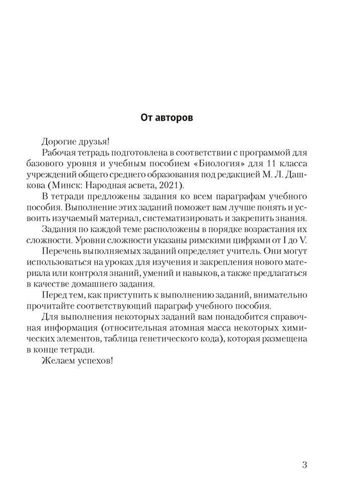 Рабочая тетрадь подготовлена в соответствии с учебной программой для базового уровня и учебным пособием «Биология» для 11 класса (под редакцией М. Л. Дашкова). В ней содержатся задания ко всем параграфам учебного пособия, которые дифференцированы по уровням сложности и могут использоваться как для самостоятельной работы учащихся, так и для работы под руководством учителя. Выполнение заданий будет способствовать лучшему усвоению учебного материала, его закреплению и систематизации.