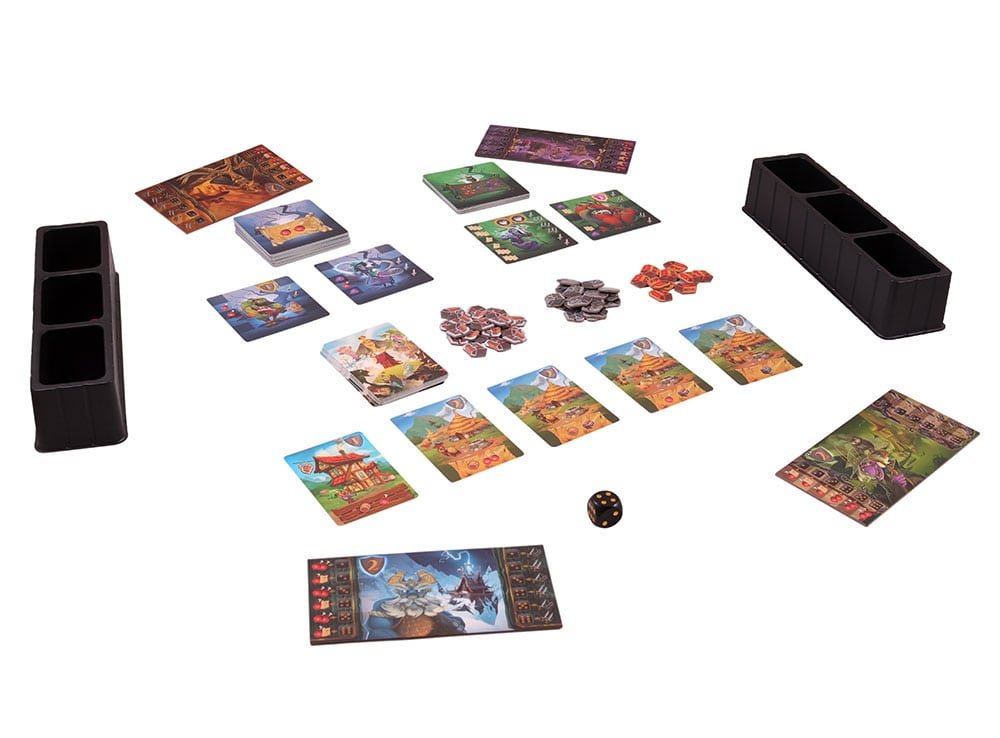 Настольная игра Bellum Magica – это простая стратегическая карточная игра, в которой каждый из игроков берёт на себя роль Тёмного владыки. У вас есть свой замок и орда злобных существ, которая каждый раунд будет приносить ресурсы и атаковать деревни жителей, а также, если вы пожелаете, может напасть на замок другого игрока. Цель игры проста: вы должны награбить как можно больше сундуков с сокровищами.
