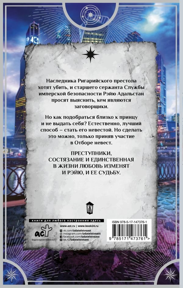 Наследника Ригарийского престола хотят убить, и старшего сержанта Службы имперской безопасности Рэйю Адальстан просят выяснить, кем являются заговорщики. Но как подобраться близко к принцу и не выдать себя? Естественно, лучший способ – стать его невестой. Но сделать это можно, только приняв участие в Отборе невест. Преступники, состязание и единственная в жизни любовь изменят и Рэйю, и ее судьбу.