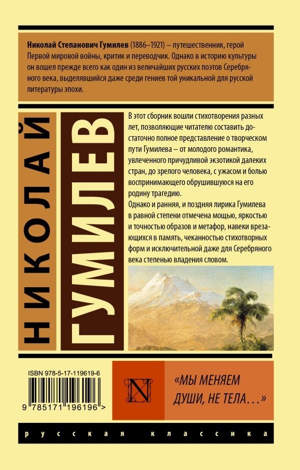 В этот сборник вошли стихотворения разных лет, позволяющие читателю составить достаточно полное представление о творческом пути Гумилева — от молодого романтика, увлеченного причудливой экзотикой далеких стран, до зрелого человека, с ужасом и болью воспринимающего обрушившуюся на его родину трагедию.