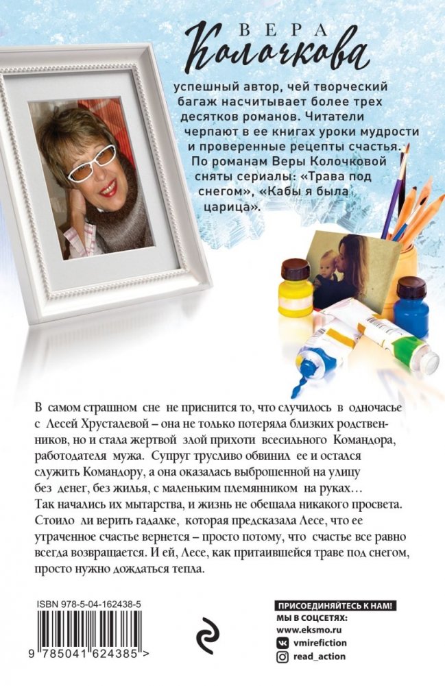 В самом страшном сне не приснится то, что случилось в одночасье с Лесей Хрусталевой – она не только потеряла близких родственников, но и стала жертвой злой прихоти всесильного Командора, работодателя мужа. Супруг трусливо обвинил ее и остался служить Командору, а она оказалась выброшенной на улицу без денег, без жилья, с маленьким племянником на руках… Так начались их мытарства, и жизнь не обещала никакого просвета. Стоило ли верить гадалке, которая предсказала Лесе, что ее утраченное счастье вернется, просто потому, что счастье все равно всегда возвращается. И ей, Лесе, как притаившейся траве под снегом, просто нужно дождаться тепла.