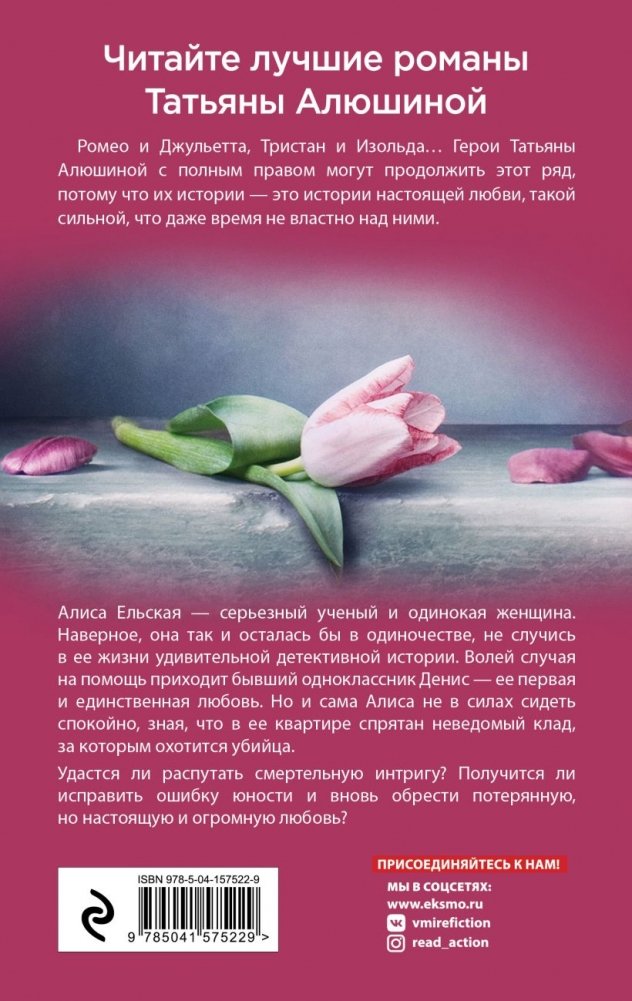 Но Алиса Ельская, героиня нового романа Татьяны Алюшиной — не только большой ученый, а еще и сильная, деятельная женщина. Она не станет пассивно ждать, пока неведомый убийца проникнет в ее квартиру и отыщет там клад, спрятанный бывшими хозяевами. Не будет рыдать и думать, зацепит ее чужая смертельная интрига или пройдет стороной.
