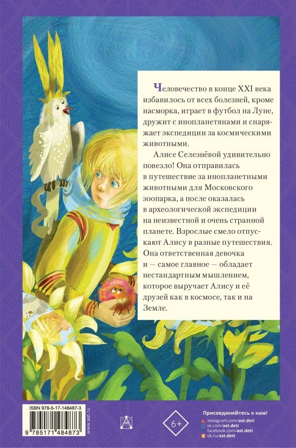 Алиса Селезнёва – самая известная героиня Кира Булычёва. По книгам о ней были сняты фильмы и мультфильмы. После ошеломительного успеха мультфильма "Тайна Третьей планеты", снятого по повести "Путешествие Алисы", Кир Булычёв написал специально для младших школьников книгу "Тайна Третьей планеты". Затем писатель сочинил ещё несколько историй о приключениях девочки с Земли. В нашу книгу вошли четыре повести: "Тайна Третьей планеты", "Алиса Селезнёва на Планете загадок", "Алиса Селезнёва и дракон", "Алиса Селезнёва и Королева пиратов на Планете сказок".