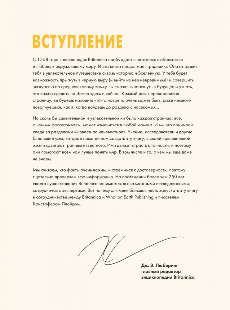 Энциклопедия Britannica издается с 1768 года и все это время пробуждает любопытство и жажду знаний в читателях всех возрастов. Книга, которую вы держите в руках, новая энциклопедия Britannica, продолжает эту традицию.