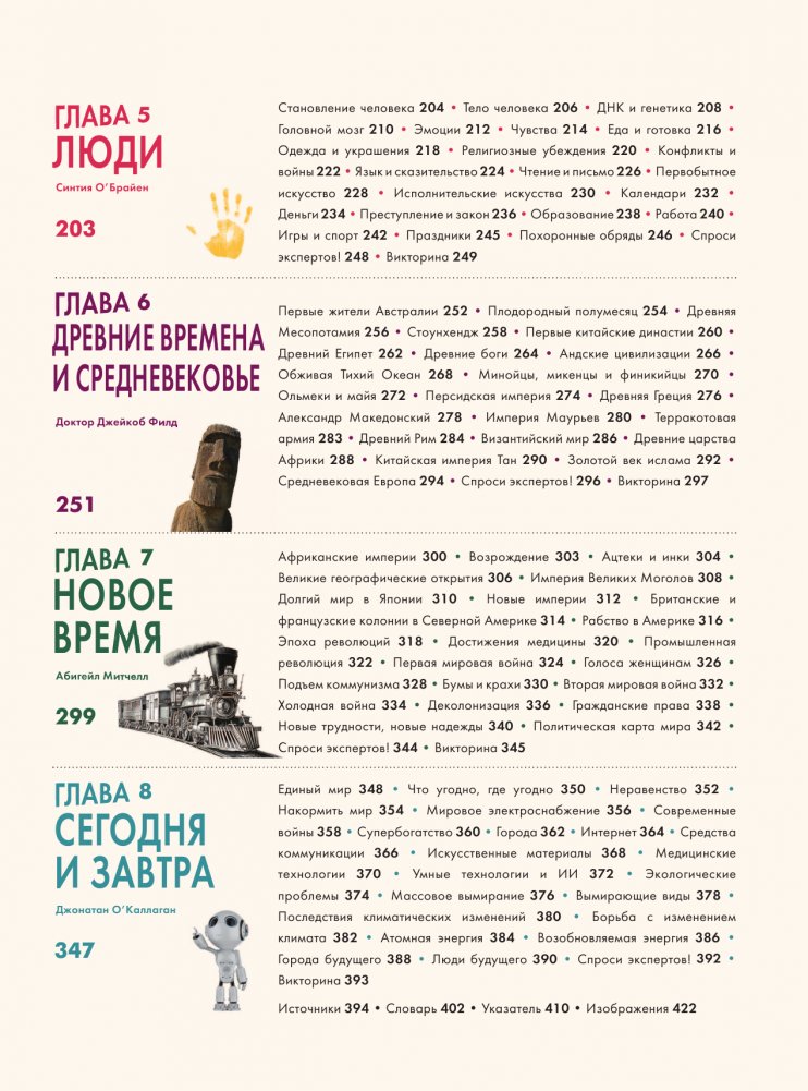 В отличие от старых энциклопедий, составленных от А до Я, эта энциклопедия отправит вас в путешествие от начала времен до наших дней — и даже позволит заглянуть в будущее! Книга разделена на восемь больших глав по темам: Вселенная и космос, планета Земля, наука, происхождение жизни, тело человека, история Древнего мира, а также новое и новейшее время. Над каждой главой новой энциклопедии Britannica трудилось огромное количество экспертов, и каждый факт в ней подтвержден специалистами.
