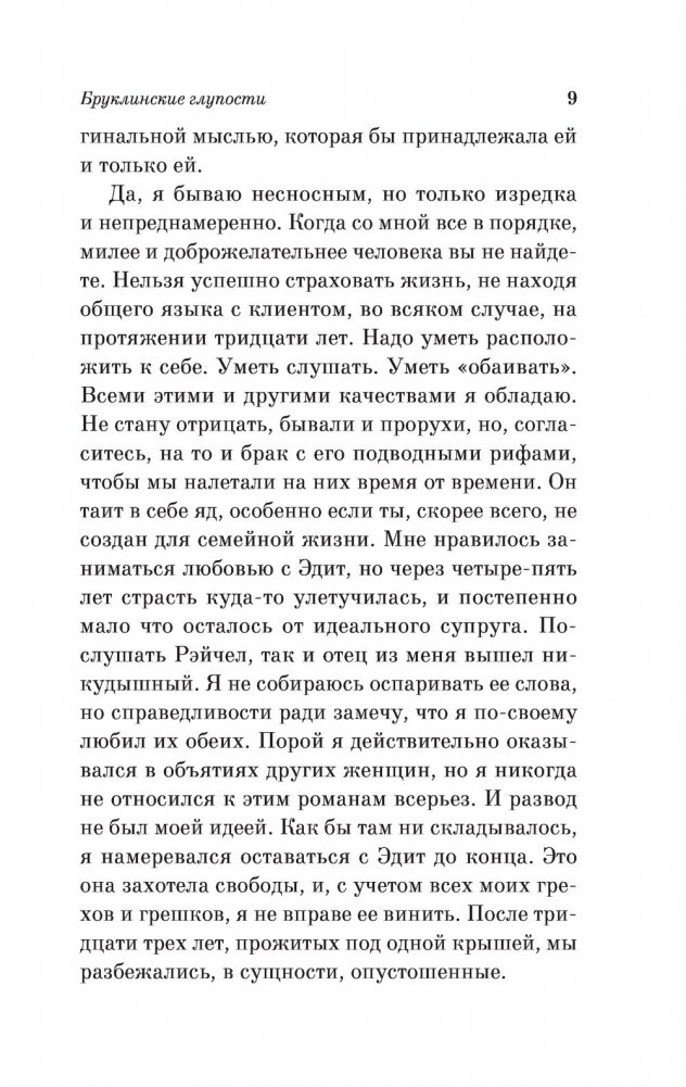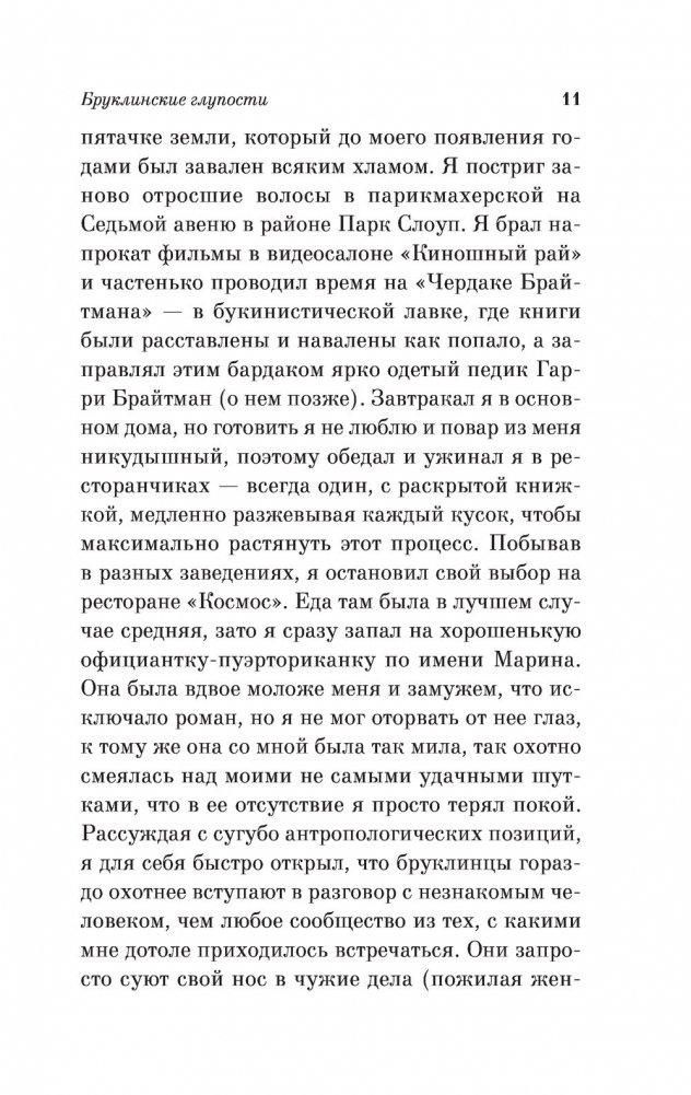 "Бруклинские глупости" – медитативный, жизнеутверждающий роман для исцеления души, роман о важном, о людях, искусстве, о любви и семье.