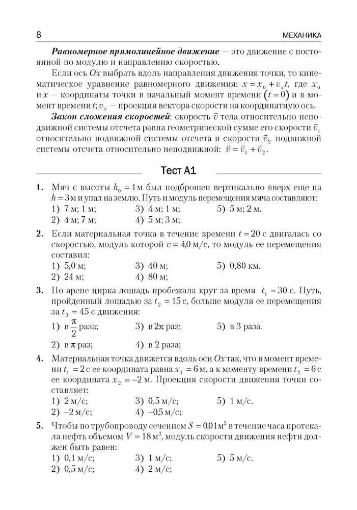 Пособие содержит основные физические понятия, законы и формулы, а также тестовые задания, которые охватывают все типы задач, предлагаемые абитуриентам на централизованном тестировании по физике. В конце книги приведены три варианта проверочных заданий, восемь вариантов итоговых тестов, которые можно выполнить онлайн на нашем сайте, а также табличные данные.