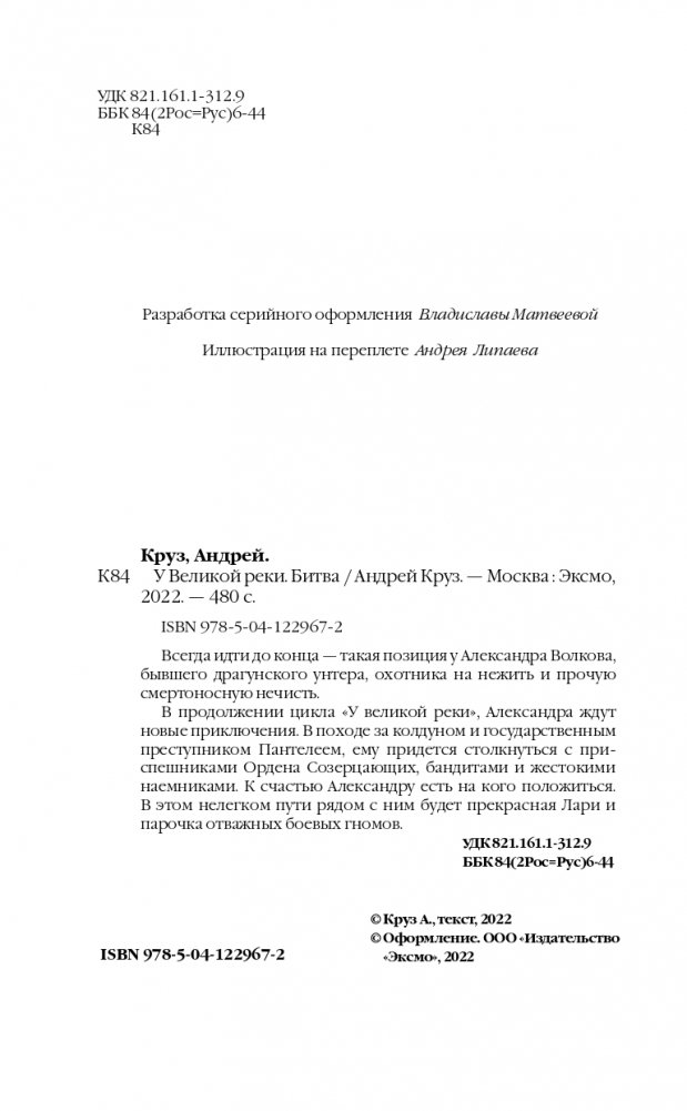 Продоолжение боевого цикла «Люди Великой реки» от мастера боевой фантастики. Реалистичные боевые сцены и суровая «окопная правда» - визитная карточка Андрея Круза, который пишет о любимом деле со знание бывшего военного и владельца оружейного магазина.