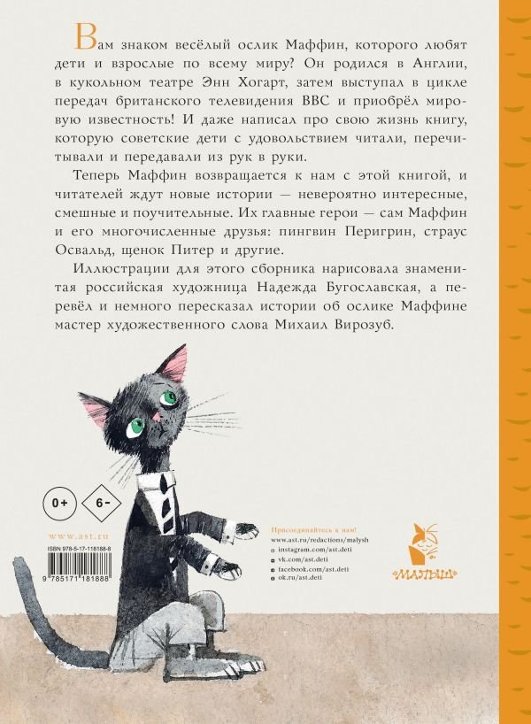 Теперь Маффин возвращается к нам с этой книгой, и читателей ждут новые истории — невероятно интересные, смешные и поучительные. Их главные герои — сам Маффин и его многочисленные друзья: пингвин Перигрин, страус Освальд, щенок Питер и другие.