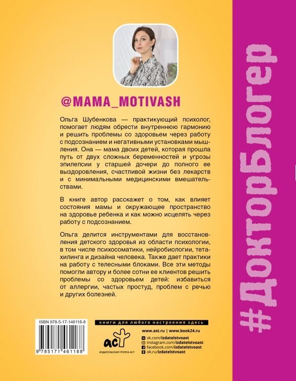 В книге автор расскажет о том, как влияет состояния мамы и окружающее пространство на здоровье ребёнка, и как можно исцелять через работу с подсознанием.