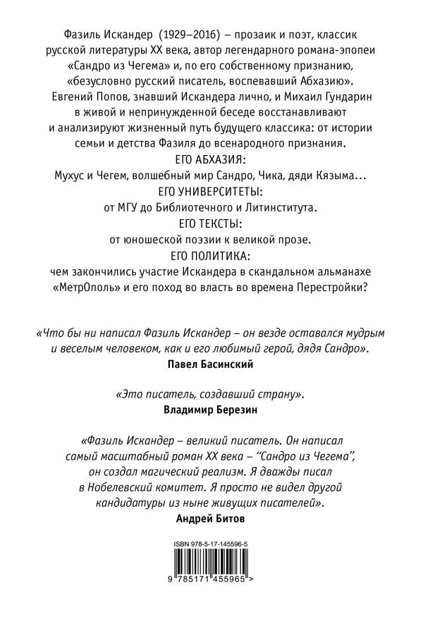 Евгений Попов, знавший Искандера лично, и Михаил Гундарин в живой и непринуждённой беседе восстанавливают и анализируют жизненный путь будущего классика: от истории семьи и детства Фазиля до всенародного признания.