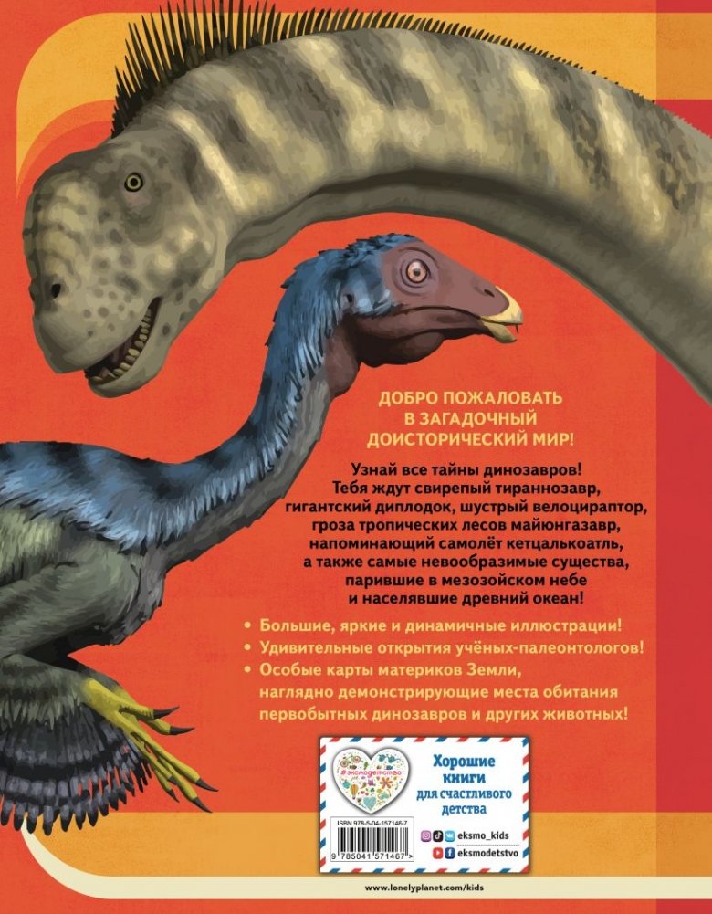 Какой древний травоядный ящер был размером почти с небоскрёб? Что общего между стегозавром и черепичной крышей? Какого теропода и почему учёные прозвали мезозойским интеллектуалом? Откуда взялся термин "динозавр"? Ответы на эти и многие другие вопросы ребятам даст увлекательнейший путеводитель по первобытным джунглям от мирового эксперта в области издания энциклопедий — Lonely Planet!