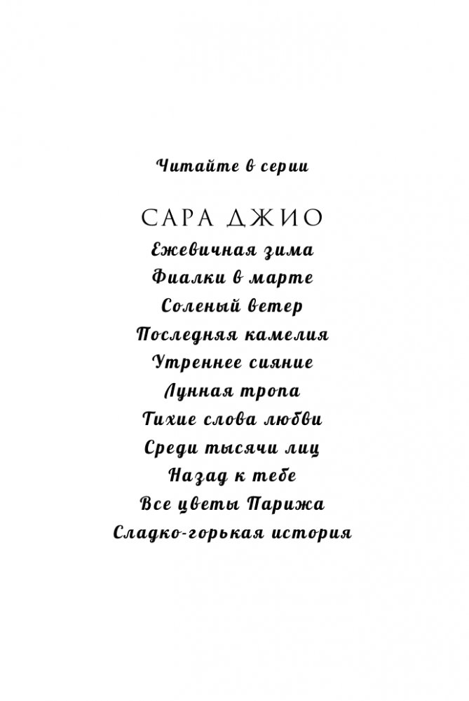 Сара Джио — успешный писатель и журналист. Ее романы стабильно занимают первые строчки в рейтинге «The New York Times» и изданы в 25 странах мира.