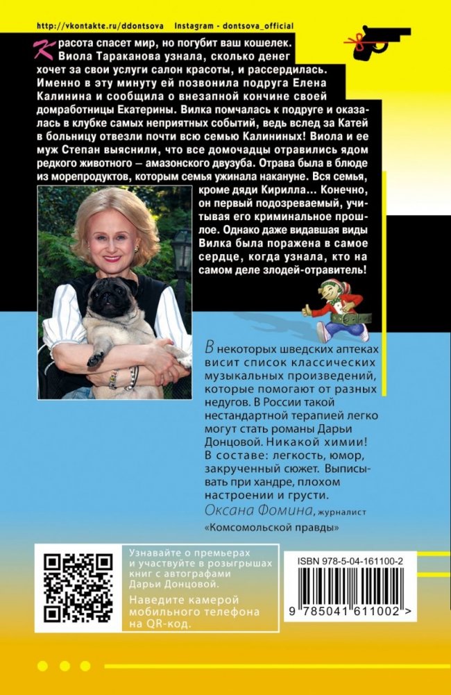 Красота спасет мир, но погубит ваш кошелёк. Виола Тараканова узнала, сколько денег хочет за свои услуги салон красоты и рассердилась. Именно в эту минуту ей позвонила подруга Елена Калинина и сообщила о внезапной кончине своей домработницы Екатерины. Вилка помчалась к подруге и оказалась в клубке самых неприятных событий, ведь вслед за Катей в больницу отвезли почти всю семью Калининых! Виола и ее муж Степан выяснили, что все домочадцы отравились ядом редкого животного– амазонского двузуба. Отрава была в блюде из морепродуктов, которым семья ужинала накануне. Вся семья, кроме дяди Кирилла… Конечно он первый подозреваемый, учитывая его криминальное прошлое. Однако даже видавшая виды Вилка была поражена в самое сердце, когда узнала кто на самом деле злодей-отравитель!