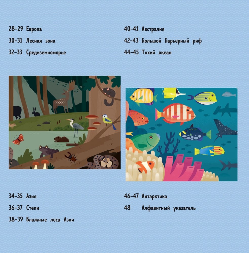 На каждом развороте — рассказ об обитателях всех континентов и природных зон — от джунглей, пустынь и саванн до тундры, высокогорий и ледяных пустынь. В этой книге более полумиллиона животных: прочти, послушай, посмотри!