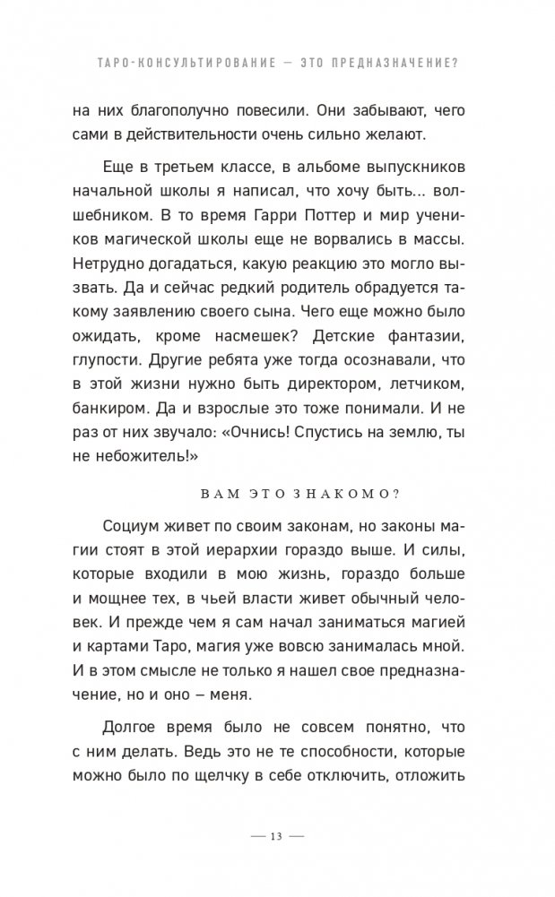 Начать знакомится с Таро можно уже в процессе чтения — в книге оставлены места для записей, где вы сможете зафиксировать свои мысли, наблюдения и результаты первых опытов.