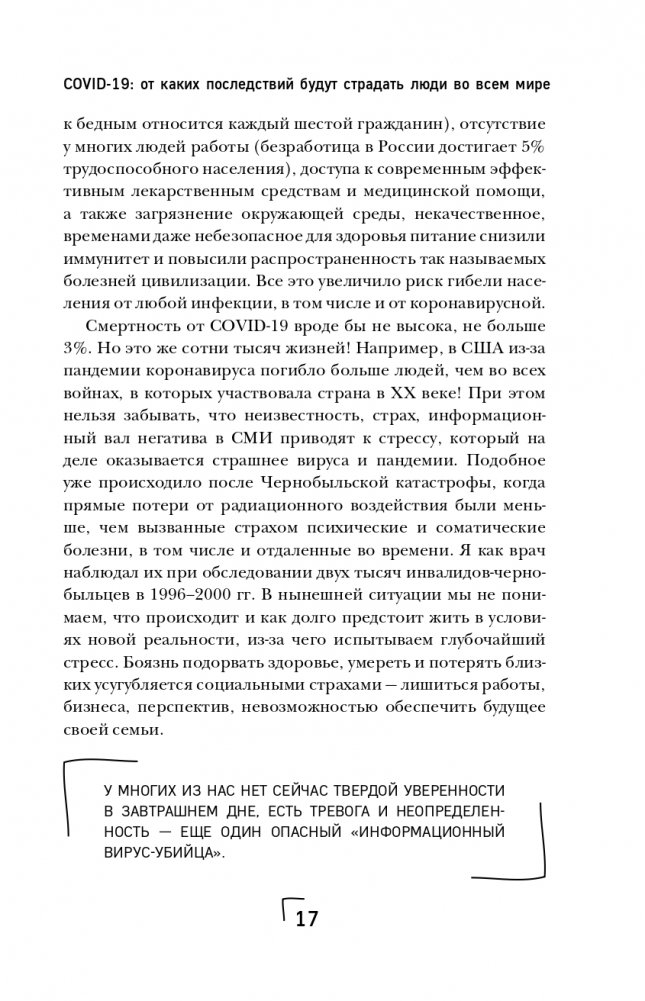 Автор этой книги, доктор медицинский наук, профессор, исследователь и врач с 35-летним стажем, дает простые и подробные советы по коррекции и профилактике потсковидного синдрома с помощью микронутриентов, витаминов и питания. Вы узнаете, какие системы и органы больше всего страдают от коронавируса; на какие симптомы обратить внимание; что делать, чтобы улучшить самочувствие; и как поддержать здоровье и уберечь себя от нового заболевания вирусной инфекцией.