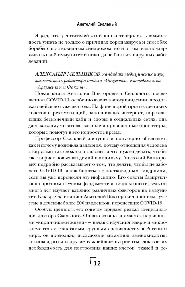 Анатолий Скальный, доктор медицинских наук, заведующий кафедрой медицинской элементологии РУДН, расскажет, как быстрее восстановиться после коронавируса. В этой книге вы найдете ответы на актуальные вопросы о борьбе с постковидным синдромом и рекомендации по профилактике его проявлений.