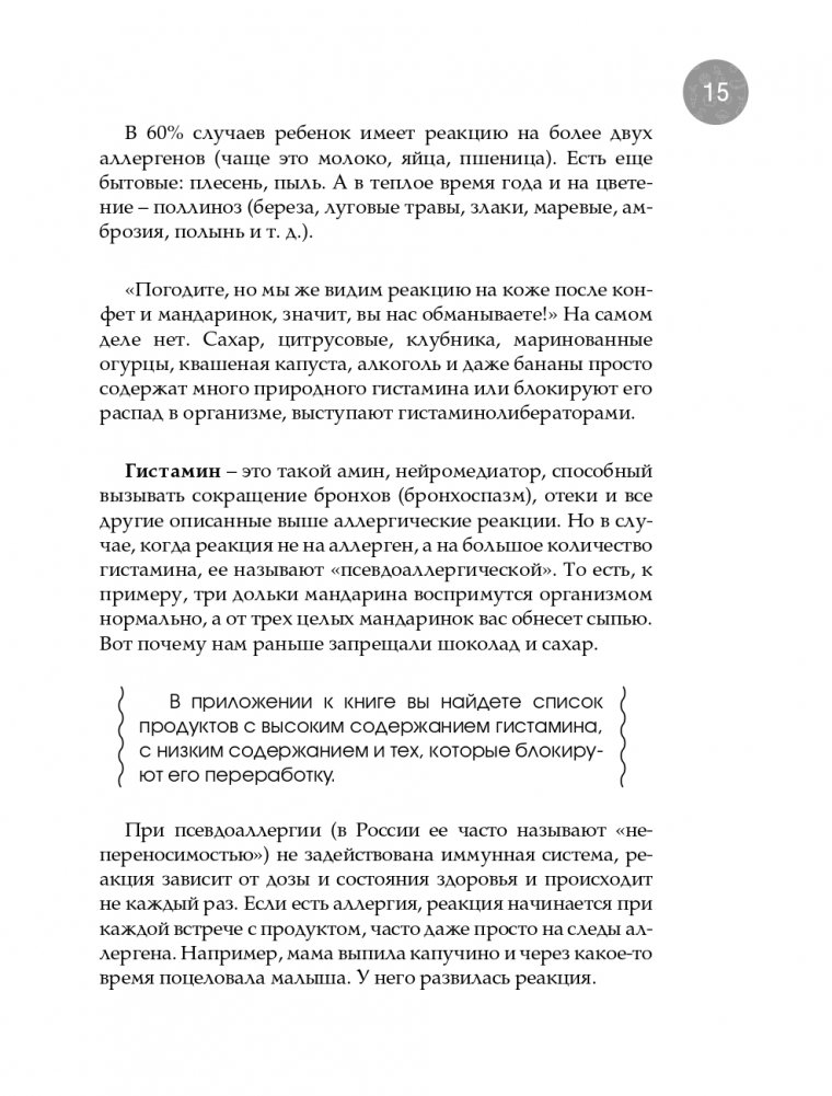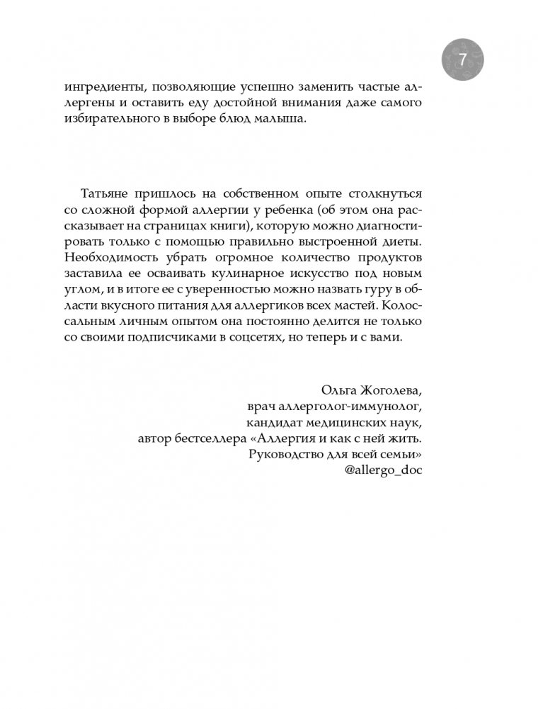 Вторая часть содержит 77 рецептов на все случаи жизни для маленьких и взрослых аллергиков: от полезных завтраков и ужинов до вкусных сладостей и выпечки. А также бонус: фотографии любимых блюд автора и ее сына.
