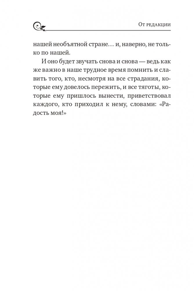 Серафим Саровский - великий подвижник Русской Православной Церкви, один из наиболее почитаемых святых, иеромонах Саровского монастыря, основатель и покровитель Дивеевской женской обители. Наследие Серафима Саровского - жемчужина духовной традиции Православия. Помимо наставлений, утешений и пророчеств в книгу также вошли отзывы о нем известных духовных и светских лиц, житие батюшки Серафима и акафист святому.