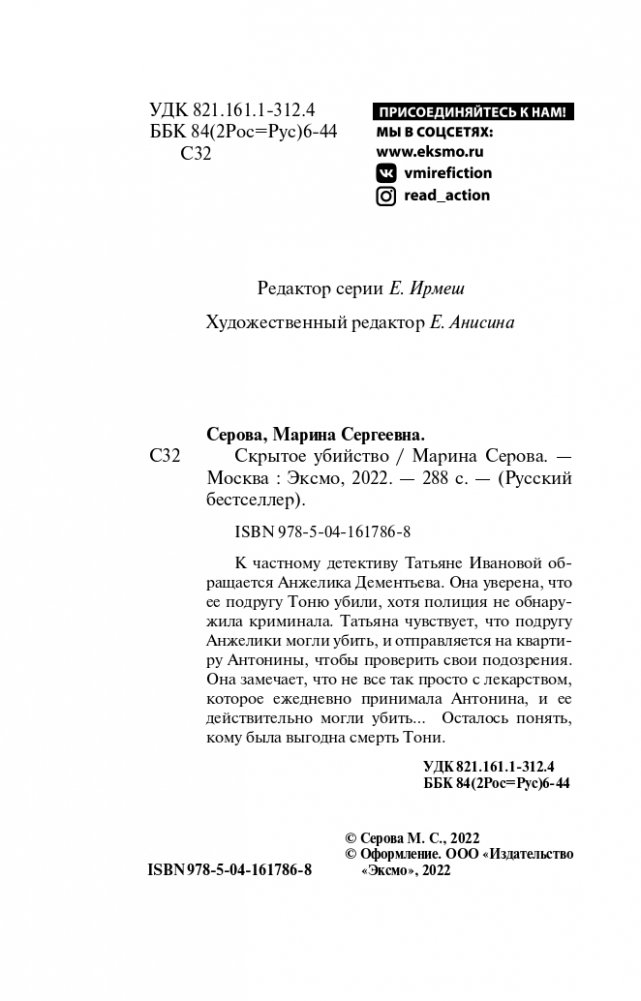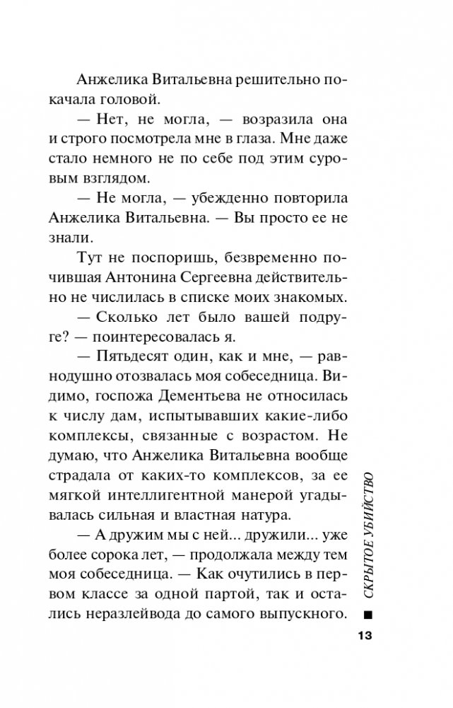 В этот раз Марина Серова представляет новинку «Скрытое убийство» — расследование частного детектива Татьяны Ивановой.